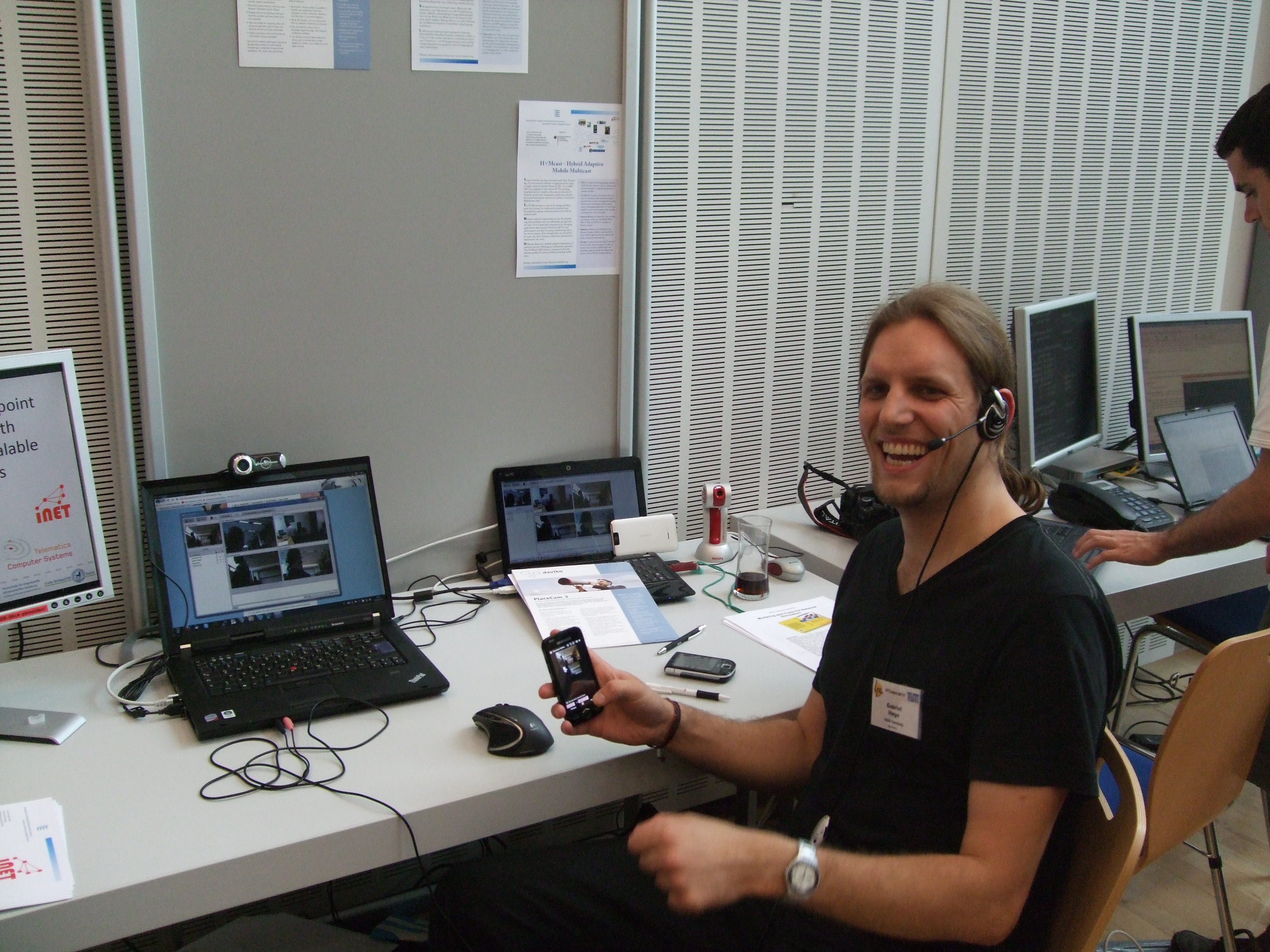 Gabriel with our mobile video conferencing demonstration Home